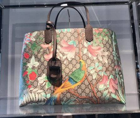 Women's Brown And Green Tian Print Gucci Canvas Shopper Tote