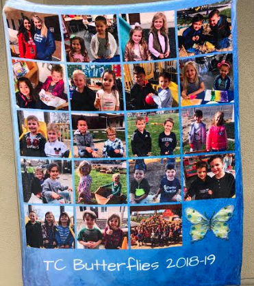 Ms. Candice's TCPS Butterflies present a blanket filled with class pictures. Super soft blue and white blanket with fun pictures of the class.